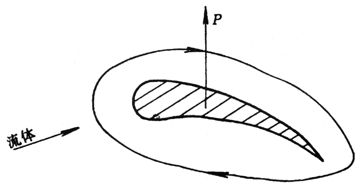 如圖7-21示。機翼上有一個順時針方向的環流運動;由於機翼向前運動,以流體相對於機翼來說作自左向右的平流運動。機翼上部平流與環流疊加流速加快,壓力降低;機翼下部平流與環流疊加流速減慢,壓力升高。這樣機翼上、下麵產生壓力差,此壓力差乘以機翼的麵積即為升力P